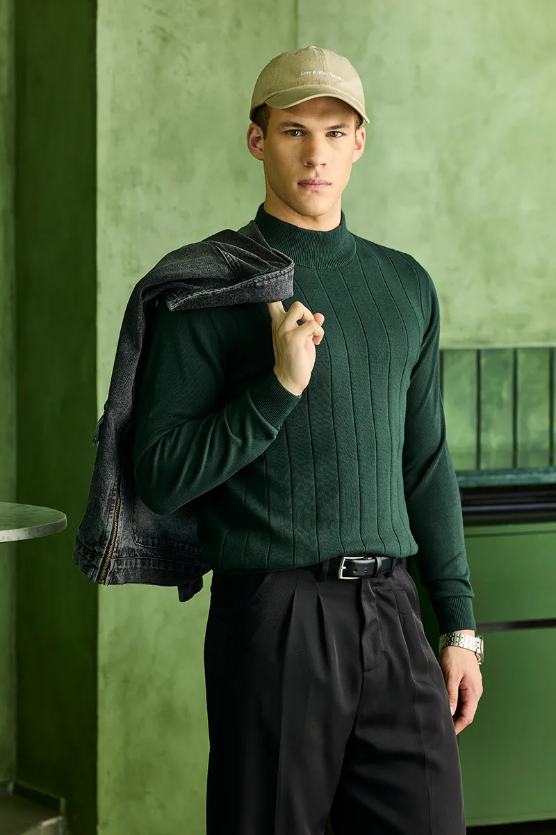 Just like clockwork, winter is back in full swing. That means sweaters and scarves and coats and gloves and every layer you can possibly imagine. Some days a down-filled puffer coat is necessary, and other times all you need is this dark green plain pattern sweater in 100% cotton ( natural stretch ) from snitch.