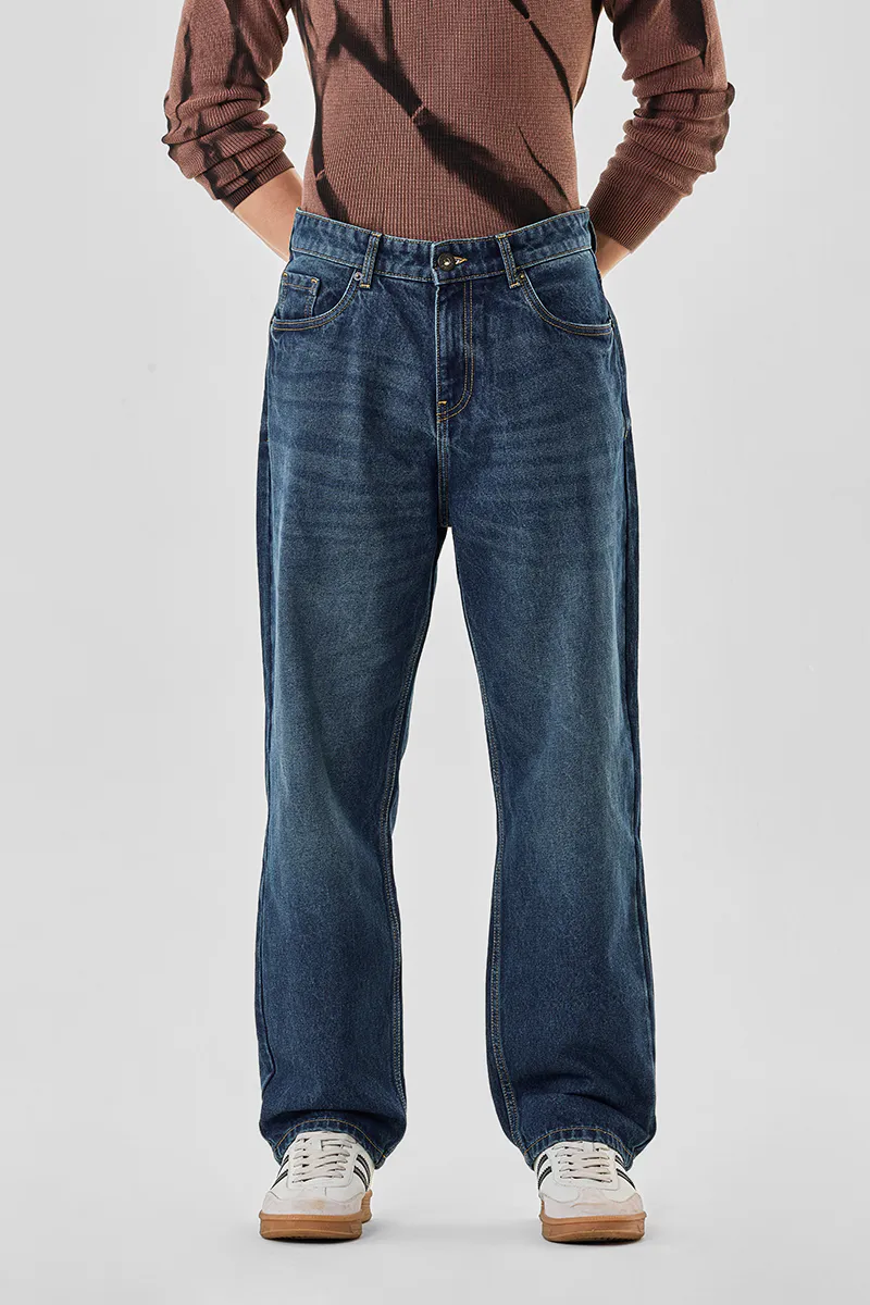 Crafted from a premium cotton blend (66% Cotton, 32% Polyester, 2% Elastane), these baggy-fit jeans offer unmatched comfort and durability. The washed texture and versatile design make them a stylish choice for casual outings.