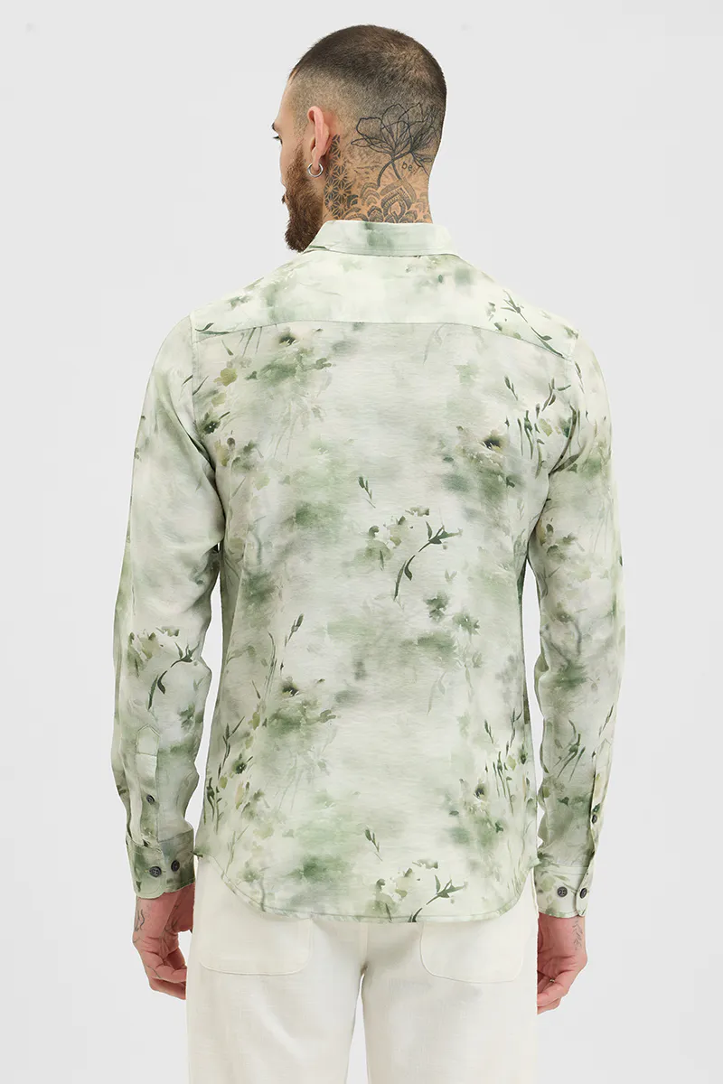 Give a majestic lift to your look with this light green abstract pattern shirt. The shirt is crafted from fine 85% rayon,15% nylon. It is a versatile staple and great for teaming with jeans for a more casual look or smartening up with a classic pair of chinos.