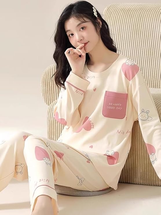 - Cute Korean Nightwear: Adorable bunny and heart prints for a stylish bedtime look
